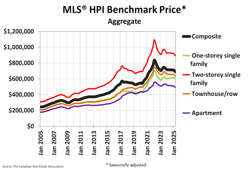 The non-seasonally adjusted National Composite MLS® HPI was down 4.8% compared to February 2025. (Chart B)
