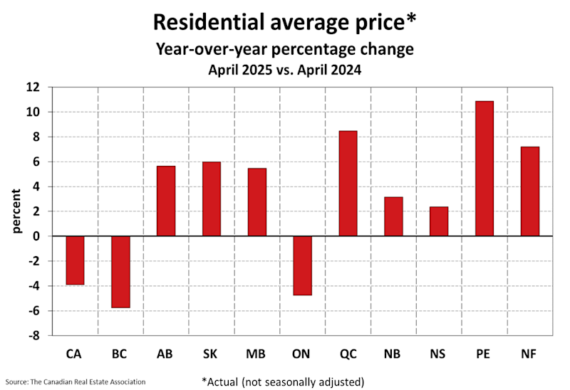 Regionally, prices remain down on a year-over-year basis in B.C., Alberta, and Ontario, offsetting gains in other provinces.